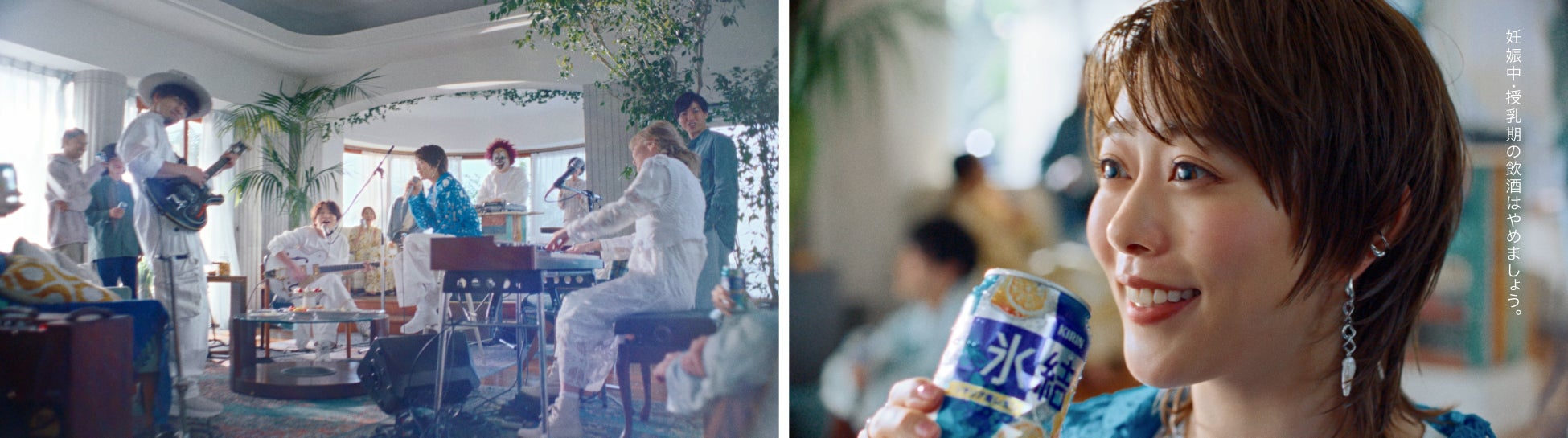 リニューアルした「氷結®️」シリーズの新TVCMでは、高畑充希さんと、SEKAI NO OWARIの皆さんが豪華共演しました。SEKAI NO OWARIの皆さんが制作した新TVCM楽曲「ターコイズ」を全員で一緒になってセッションし、作り上げていく様子が描かれています。また、みんなで夢中になってセッションを楽しんだ後には、弾ける笑顔と「NEW 氷結®」で乾杯!キーメッセージである「たのしいほうが、おいしいよ。NEW 氷結®」を体現した、 「氷結®️」らしい爽快なTVCMが完成しました。ぜひご注目ください。
