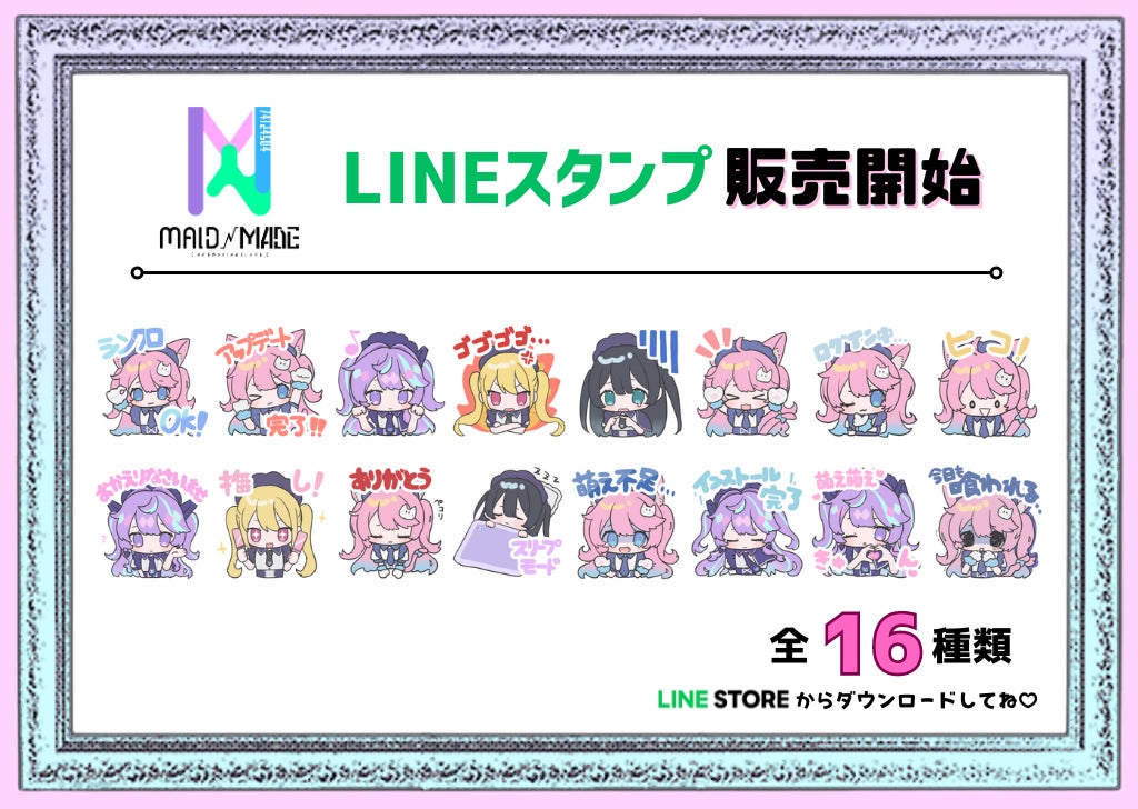 このスタンプは、2021年に名古屋大須にオープンした人気メイドカフェ「MAID MADE(メイドメイド)」とのコラボレーション作品です。