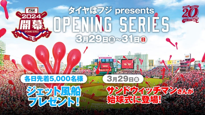 また、3月29日の開幕戦では、20周年アンバサダーのサンドウィッチマンさんが始球式を行います。