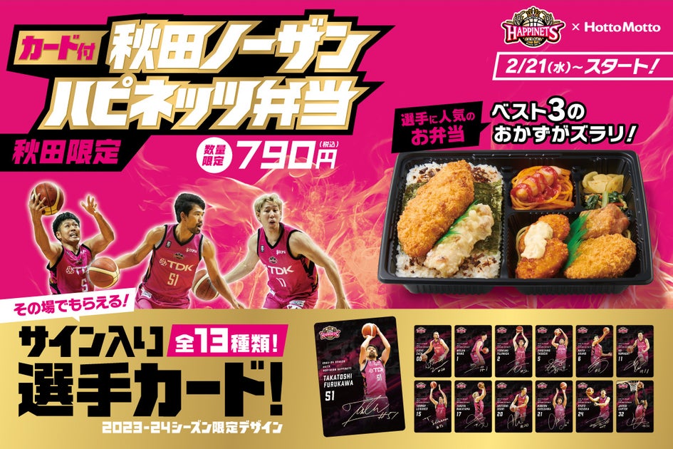 このイベントでは、長谷川暢選手がほっともっと土崎港北店で「秋田ノーザンハピネッツ弁当」を提供します。