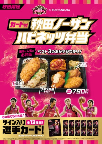 - 秋田ノーザンハピネッツ弁当、選手カード、のり弁、から揚、チキン南蛮ナゲット