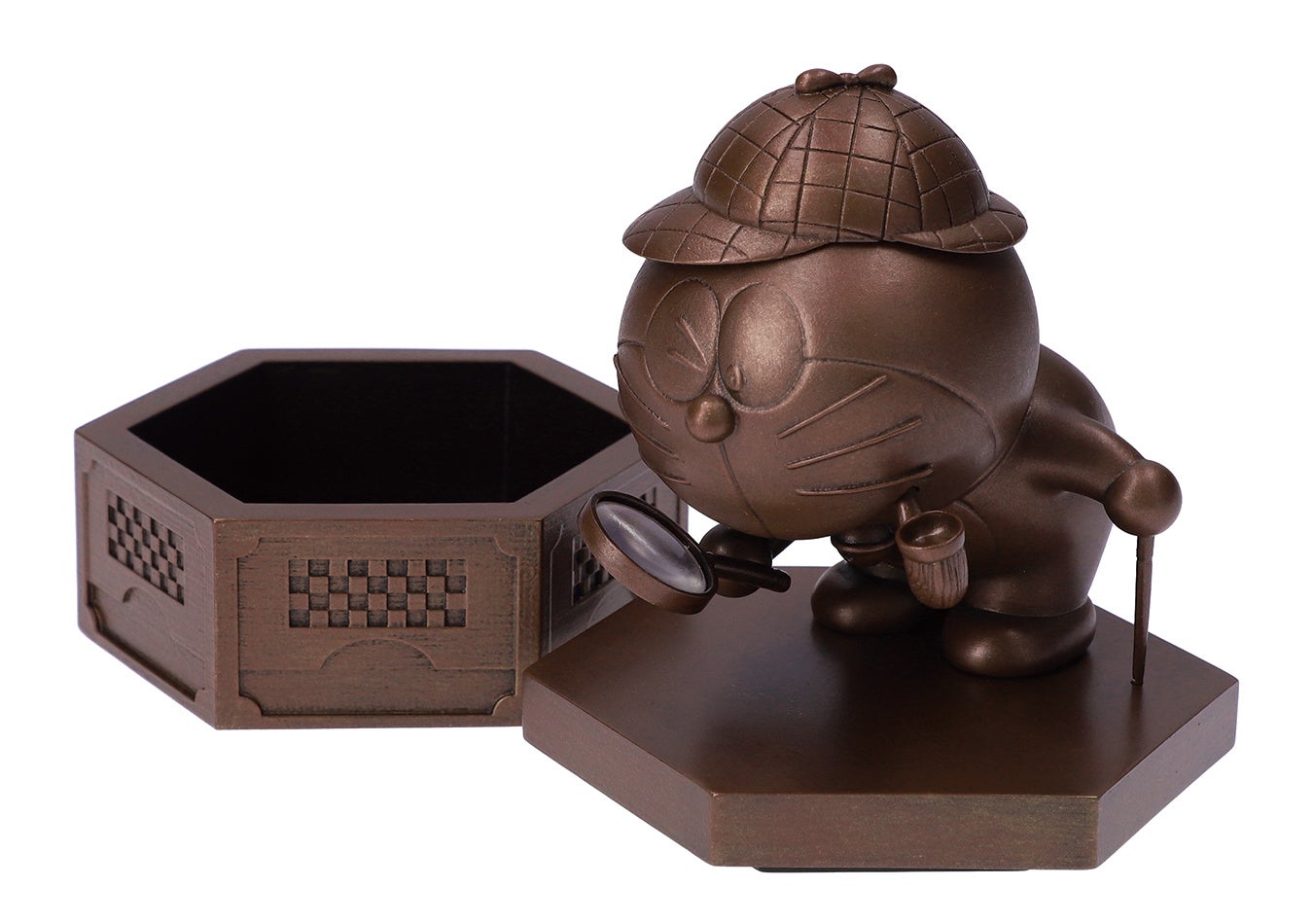 フィギュア小物入れはドラえもんがシャーロック・ホームズに扮し、探偵道具を持って立体化されています。