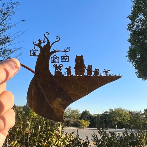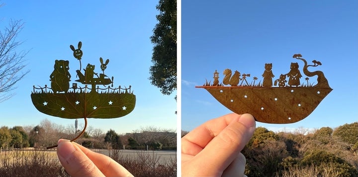 リトさんの作品は、小さな葉っぱに刻まれた動物たちの優しいストーリーで、その繊細さやかわいさ、独自性が国内外で注目されています。