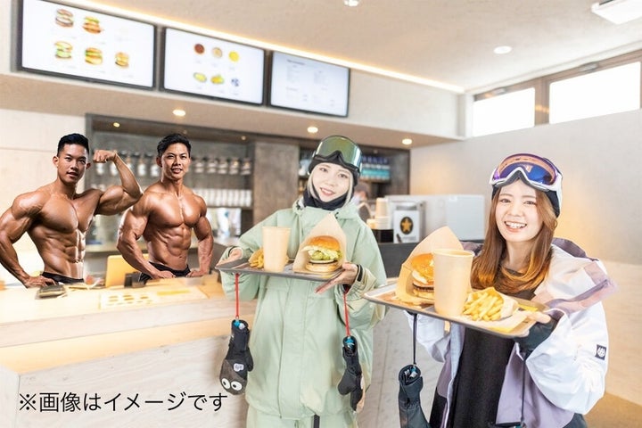 - マッスルお兄さんが店員となり、マッスルバーガーやマッスルカレーを楽しめる