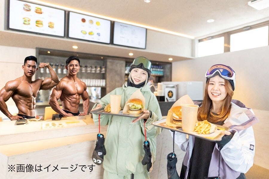 このイベントでは、マッスルお兄さんが店員として活躍し、マッスルバーガーやマッスルカレーを楽しむことができます。
