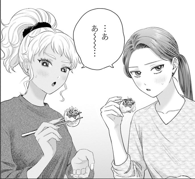 天音と伊地知が恥ずかしそうにたこ焼きを持ちながら話す姿は印象的で、可愛らしい様子が描かれています。