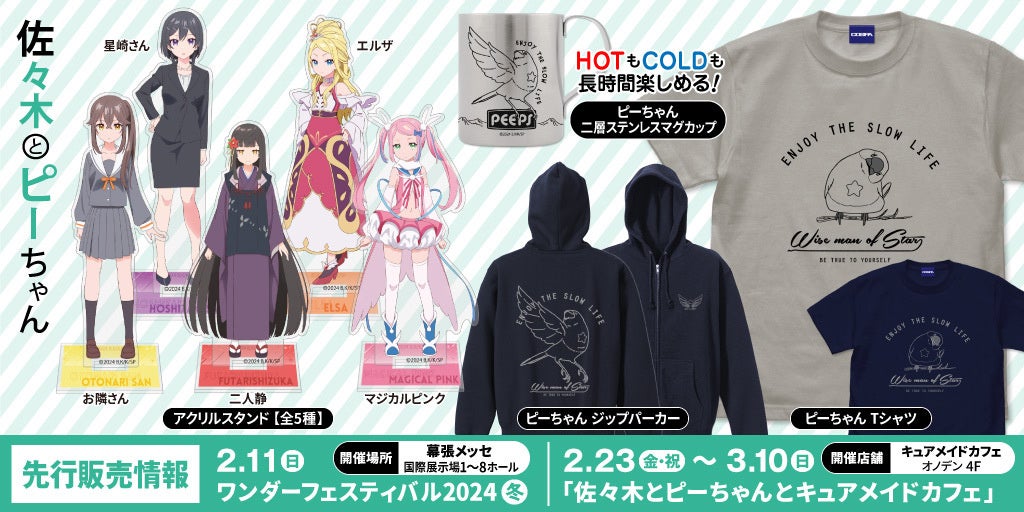 - 先行販売は2024年2月11日のワンダーフェスティバルと2月23日から3月10日までの「佐々木とピーちゃんとキュアメイドカフェ」で行われる