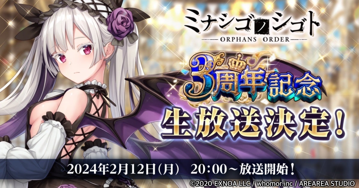 『ミナシゴノシゴト』の3周年を記念した生放送が2月12日(月)に配信されます。