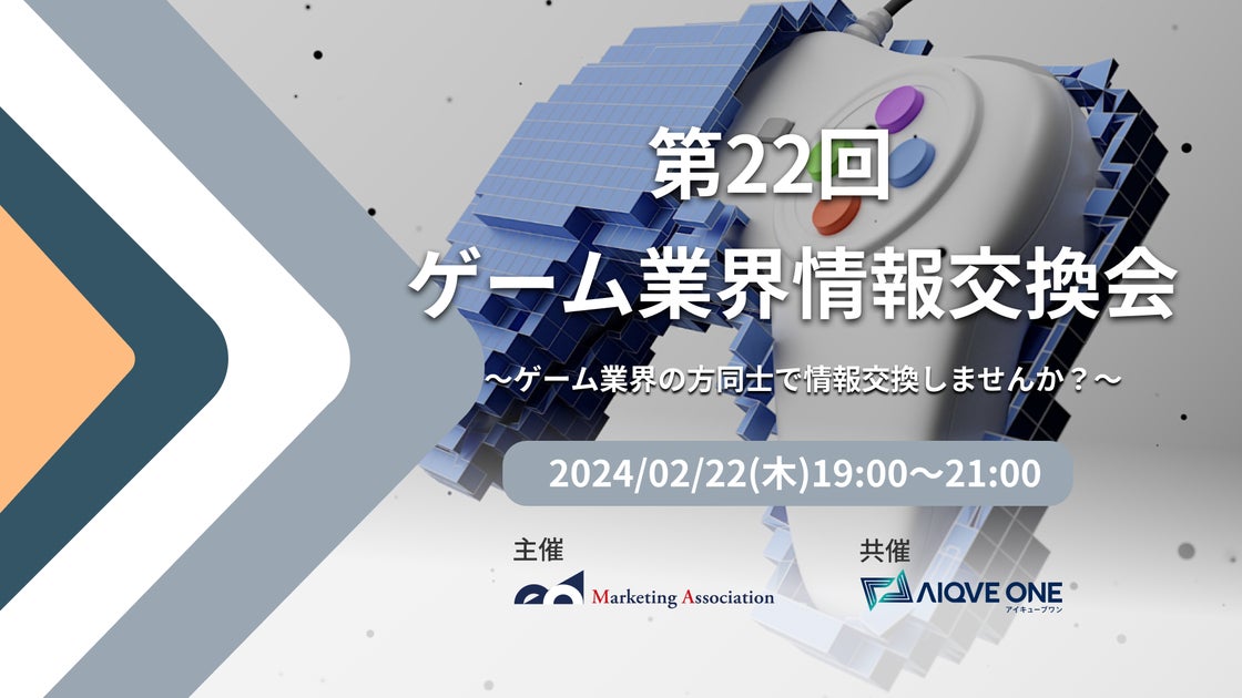 マーケティングアソシエーション株式会社は、2024年2月22日にAIQVE ONE株式会社と共同で「第22回 ゲーム業界情報交換会」を開催します。