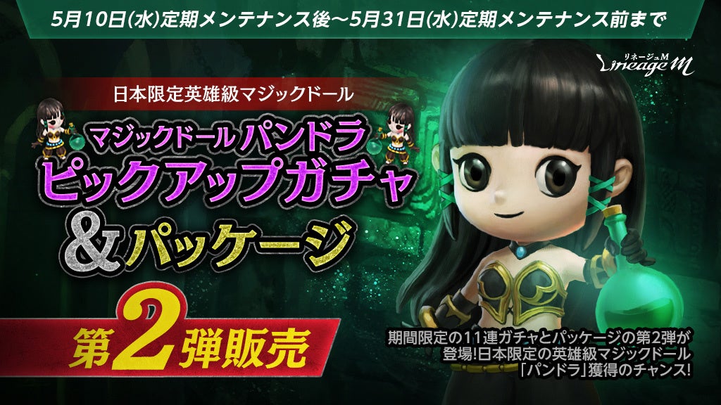 さらに、日本限定英雄級マジックドール「パンドラ」が入手できるピックアップガチャやパッケージも登場する。