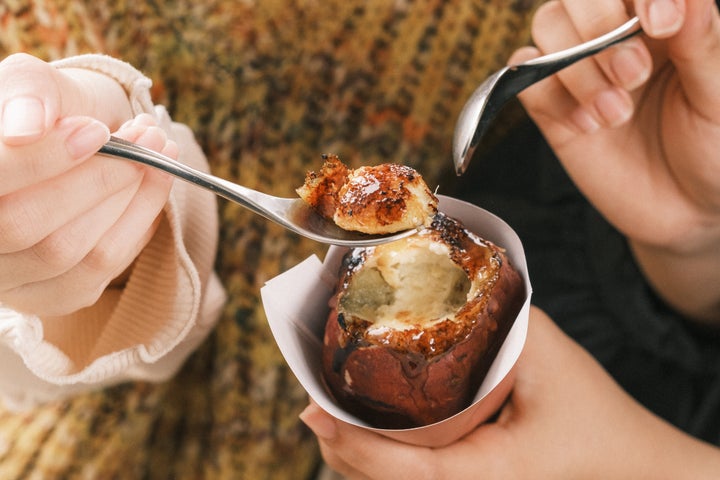 - 壺芋ブリュレは冷凍で提供され、自宅でもバーナーでキャラメリゼを楽しむことができる