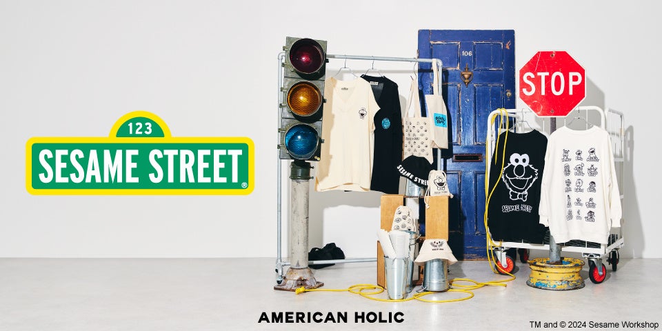 エルモやクッキーモンスター、ビッグバードなどの人気キャラクターたちが、AMERICAN HOLICのアイテムに登場します。