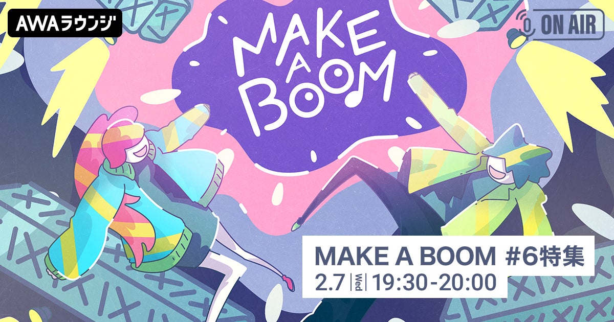 このイベントは、主要音楽ストリーミングサービス12社で聴けるプレイリスト「BOOM BOOM BOOM」と連動しており、秋山黄色、須田景凪、Novel Core & THE WILL RABBITSの楽曲をオンエアします。