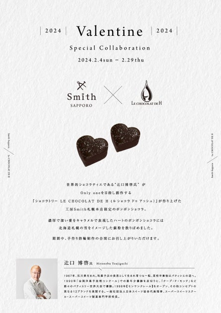 北海道札幌市の工房Smith札幌本店では、2024年2月4日から2月29日まで、世界的なショコラティエである辻口博啓氏が監修したチョコレートを提供しています。