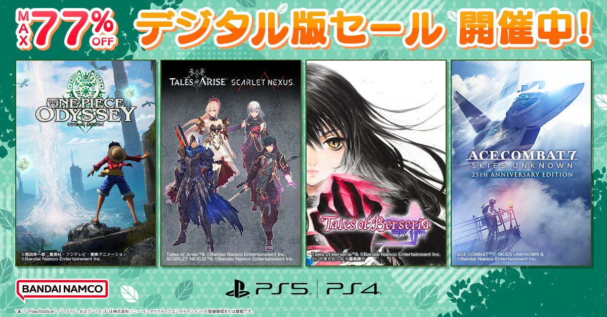 バンダイナムコエンターテインメント『デジタル版セール』開催中!「ONE PIECE ODYSSEY」や「テイルズ オブ ベルセリア」など DL版ゲームが最大77%OFF!
