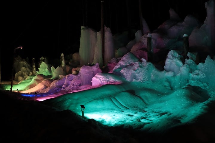 【岐阜県高山市】第49回氷点下の森氷まつり開催!カクテルライトに照らされる七色の氷の森