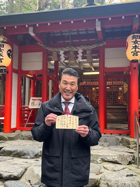 元プロボクサーで演歌歌手の山崎ていじ(66)が、三重県鈴鹿市の椿大神社で新曲「ふたりで夢さがし」のヒット祈願を行いました。