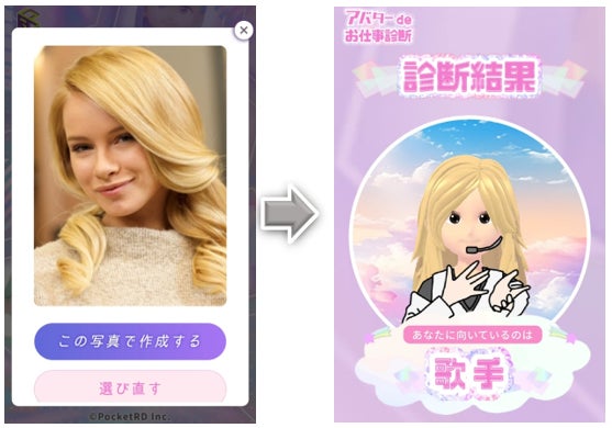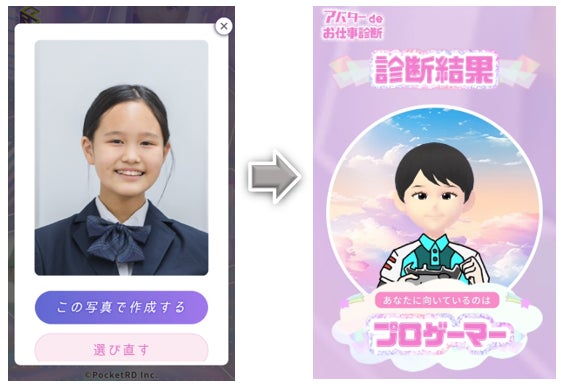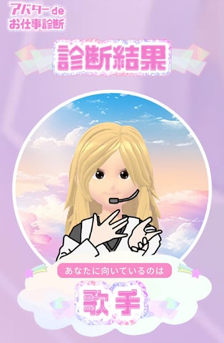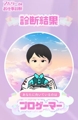 心理学に基づいた適職の衣装を着たアバターが生成され、自分に似たアバターを楽しむことができます。