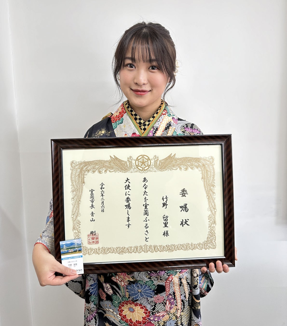 室蘭市出身の竹野留里が、室蘭ふるさと大使に就任しました。
