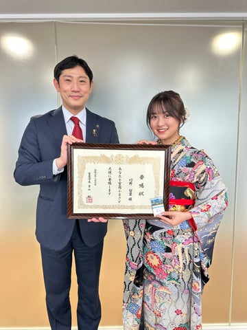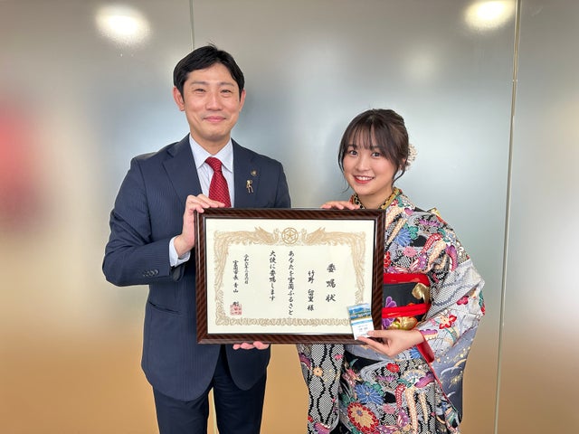 青山市長は竹野の所属事務所を訪れ、委嘱状を手渡しました。