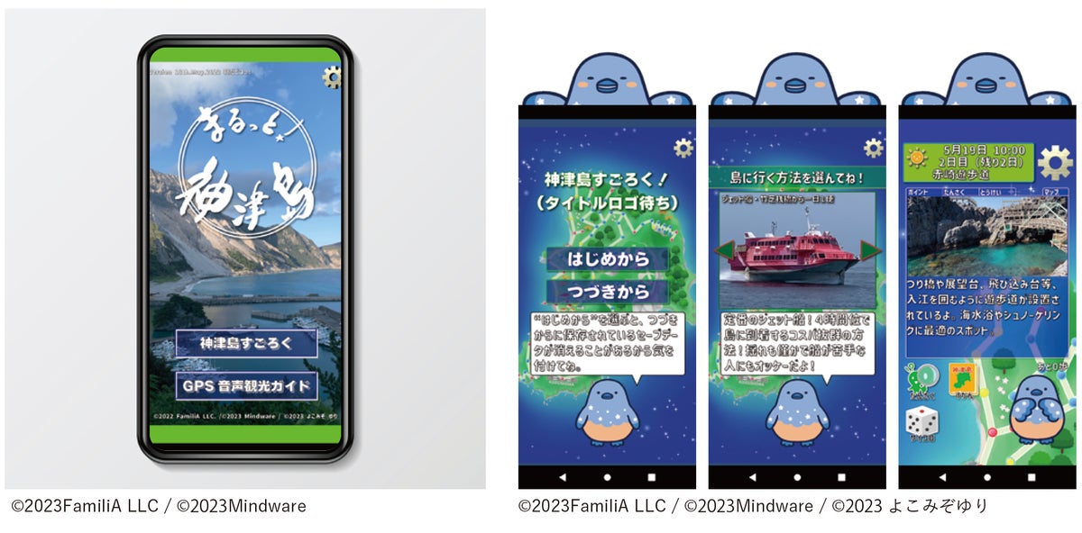 このアプリでは、神津島旅行を体験できる「季節連動すごろく」と、現地で豪華声優による音声案内が楽しめる「GPS連動ドラマチック音声ガイド」が提供されます。