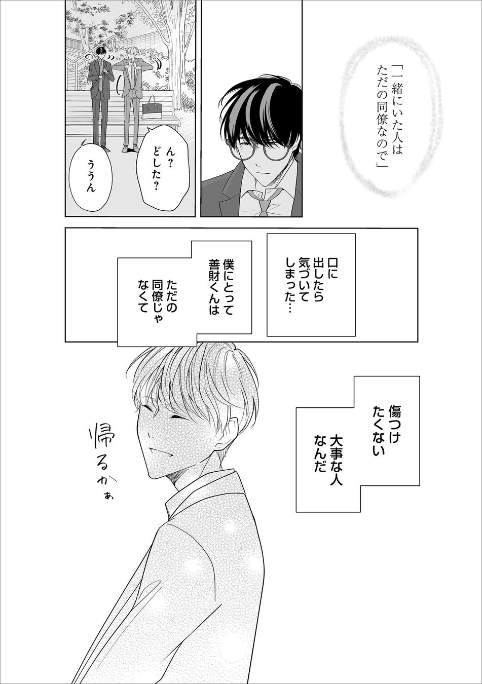 • 田中と善財は同期の仲間で、お互いに気になりながらも関係が変化する。