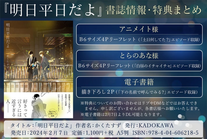 同期の切ない恋愛を描いた新作BL『明日平日だよ』が待望の書籍化!