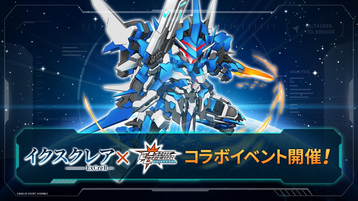 「イクスクレア」コラボイベントが開催されます!オリジナルロボ「イクスクレア」と『CosmicBreak Universal』がコラボし、2月7日から始まります。