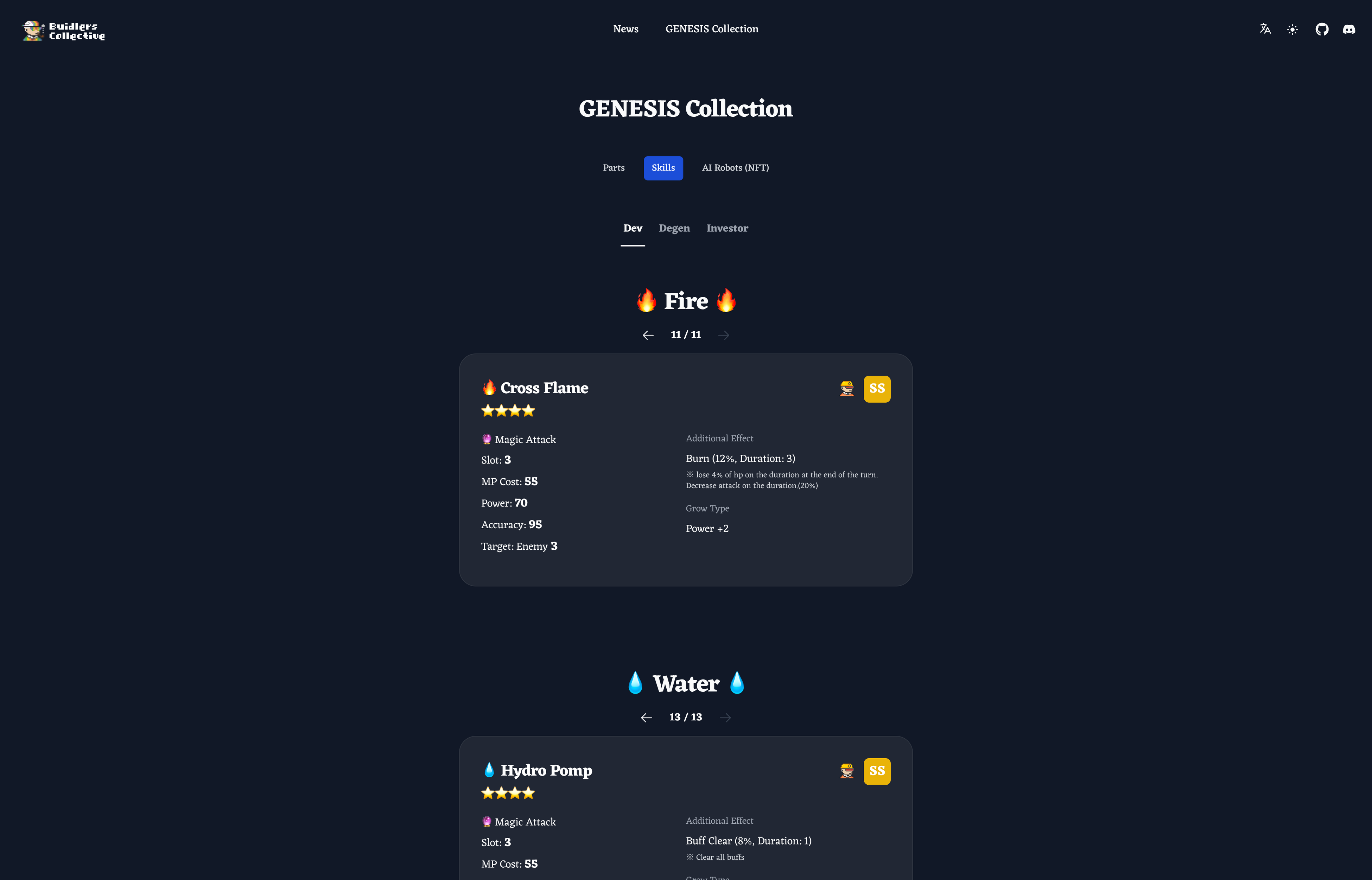 • レンタル機能も実装予定で、トークン報酬を得られる。プレイヤーはDev、Degen、Investorの中から自身のジョブを選択し、ステータス優遇がある。開発者、広報、投資家の連携が大切で、実世界の問題が解決される。