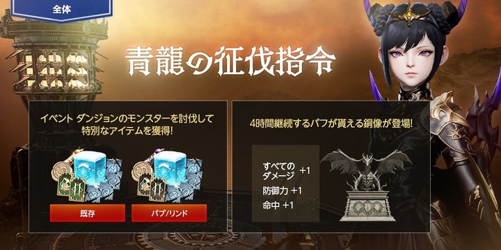 - 祝福がおりた塔と青龍の征伐指令のイベント開催