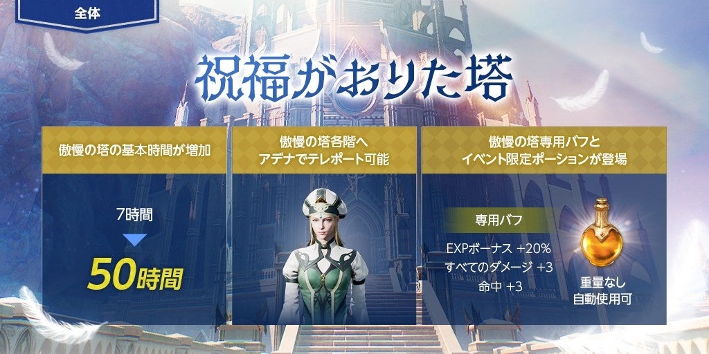 また、「祝福がおりた塔」と「青龍の征伐指令」のイベントも開催され、プレイヤーは特典やアイテムを獲得することができます。