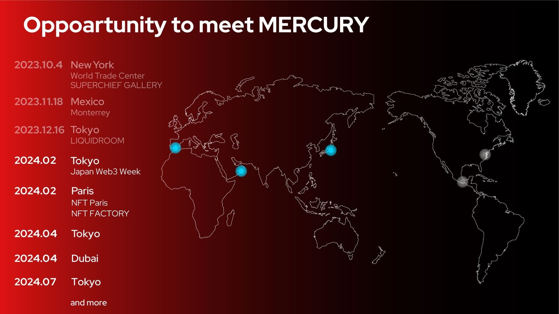 2024年2月、MERCURYはNFT Parisで展示を開始し、4月と7月には”MERCURY 大規模個展”を予定しています。