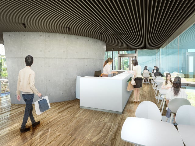 - 美術館内には全面ガラスのカフェがオープンし、開放的な空間でくつろげる