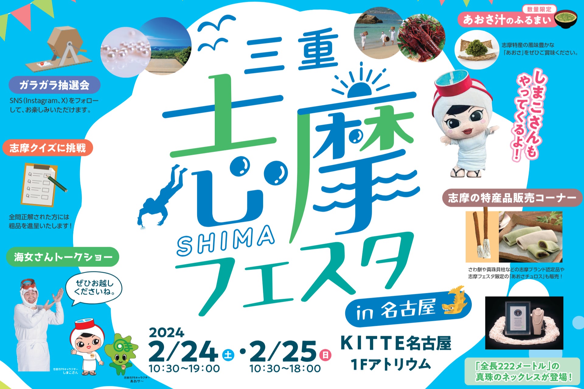 志摩市観光協会は、2024年2月24日(土)・25日(日)にKITTE名古屋で「志摩フェスタ in 名古屋」を開催します。
