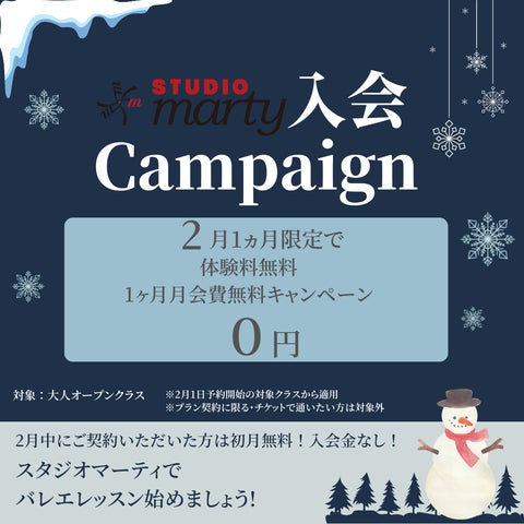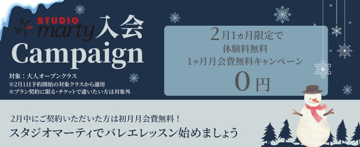 - 2月限定でバレエレッスンを1か月無料で受けられる