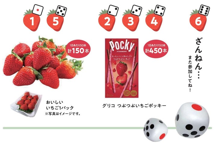 出目が「1」または「5」なら、おいしい旬のいちご1パックがもらえます。