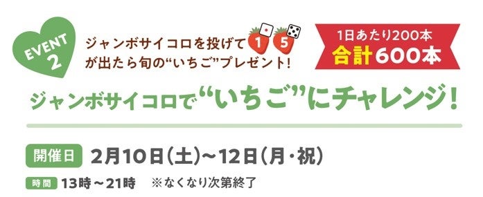 • ジャンボサイコロのいちごに挑戦:サイコロの出目に応じて賞品がもらえます。