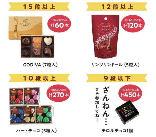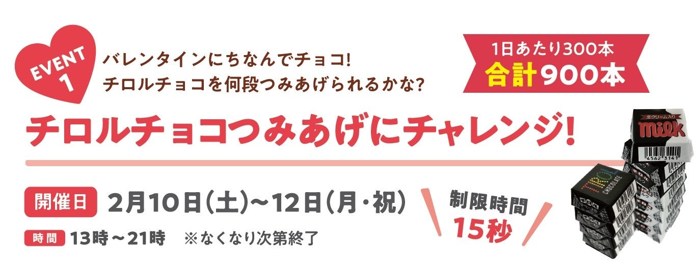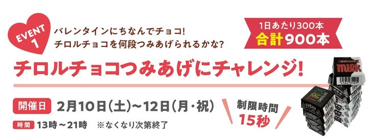 • チロルチョコのつみあげイベント:15秒以内に積み上げた段数に応じて豪華な賞品がプレゼントされます。