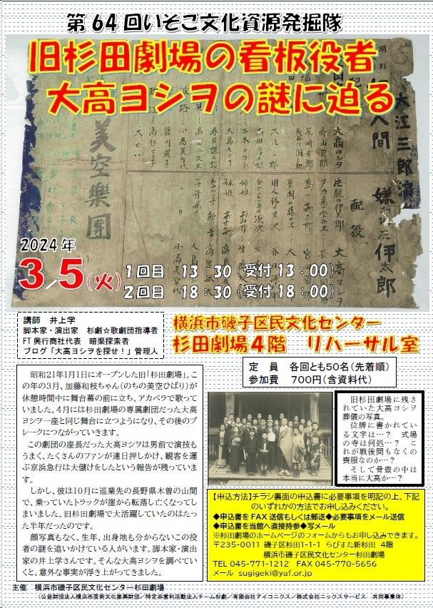 - 旧「杉田劇場」で活躍した大高ヨシヲの謎に迫るイベント開催