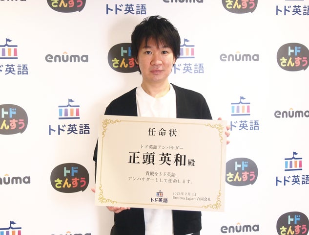 Enuma Japan 合同会社は、正頭英和氏が3~9歳向けの英語学習アプリ「トド英語」の公式アンバサダーに就任したことを発表しました。