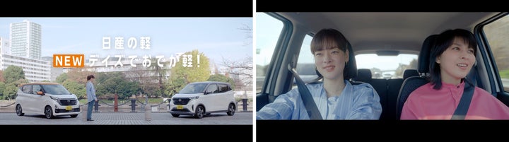 彼女たちは以前にも日産の軽自動車のCMで共演しており、今回は「おでかけが楽しくなる軽自動車」をテーマに、日産デイズに乗っておでかけをするドライブが描かれています。