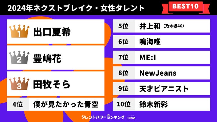 - 2024年のネクストブレイク男性タレントと女性タレントが選出された