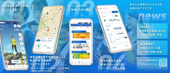 エコライフアプリ「SPOBY」は、CO2排出量の削減と健康増進を促すアプリであり、個人情報の保護にも配慮しています。