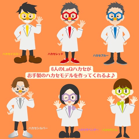 ハカセレッド、ハカセブルー、ハカセイエロー、ハカセライム、ハカセシルバー、ハカセラベンダーのいずれかのモデルが届きます。