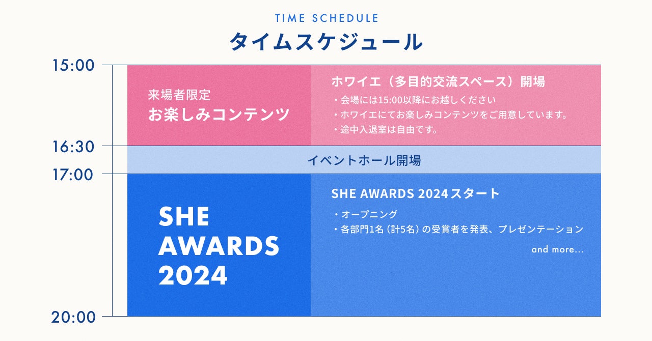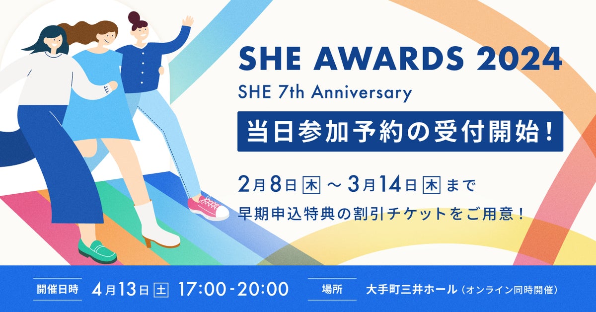 SHEは、自分らしく生きることを目指すシーメイトのための年に一度の祭典「SHE AWARDS 2024」を4月13日(土)に開催します。