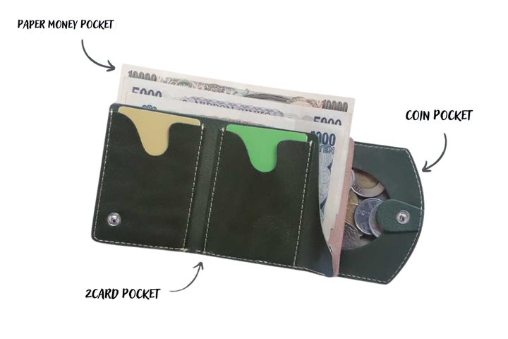 - コンパクトなサイズでお札やカード、コインが収納可能