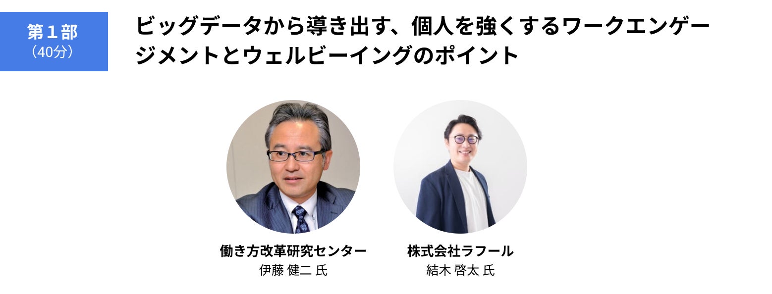 基調講演では、ビッグデータを活用したワークエンゲージメントとウェルビーイングのポイントについて解説されます。