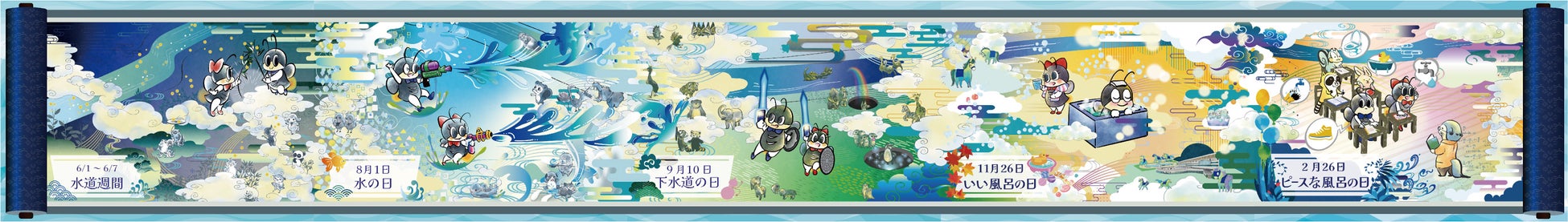 さらに、各イベントのメインビジュアルをつなげて1本の絵巻物が完成し、水道・下水道の重要性をユニークに表現しています。