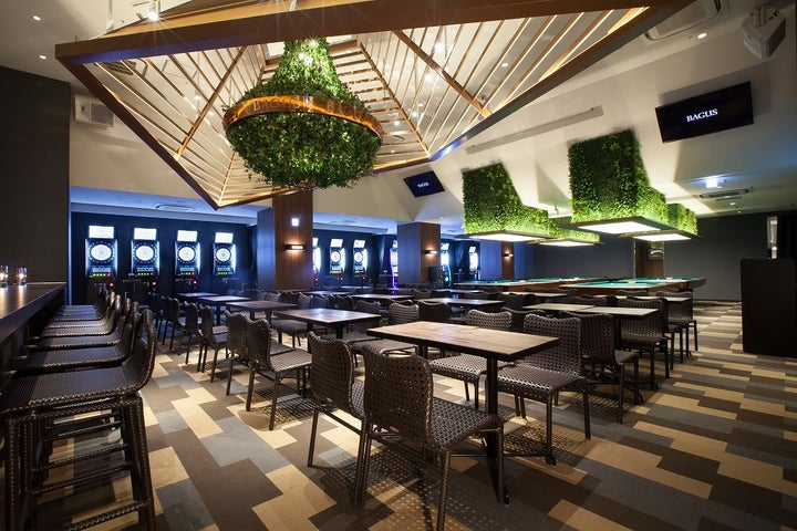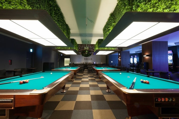 - BAGUSは洗練された大人のアミューズメント空間で、ビリヤードやダーツ、カラオケ、シミュレーションゴルフなどのコンテンツを楽しむことができる