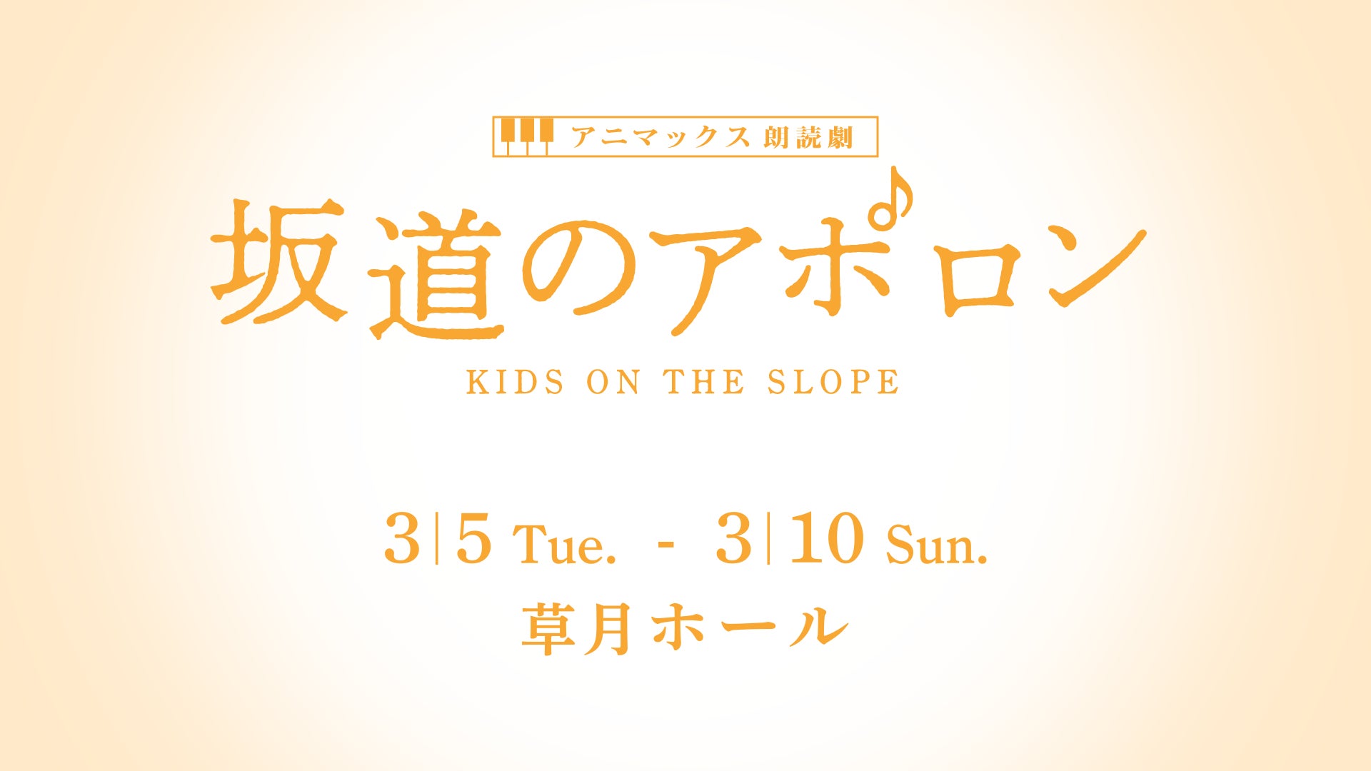 アニマックス朗読劇『坂道のアポロン』初の朗読劇化!!2024年3月5日(火)~10日(日)@草月ホール 開催決定出演キャスト発表&オフィシャル先行チケット販売開始